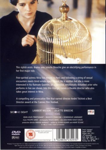 A woman and three men. Nina, who's come to Paris to act and sleeps with any man at hand, meets Paulot, a young estate agent; he's smitten. She also meets Paulot's flatmate Quentin, a compulsive who stalks her. To Paulot's jealous dismay, she's willing to sleep with Quentin, and wants Paulot's friendship. After a desperate act by Quentin, Nina and Paulot share a flat, but she still won't take him as a lover; instead, her energy goes into a production of "Romeo and Juliet" directed by a detached, intense man who becomes her father figure. Quentin's ghost taunts her, Paulot wants to end all contact, and the director plans to return to London. The art of the theater may be her only refuge.