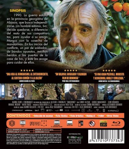 War in Abkhazia 1990. An Estonian man Ivo has stayed behind to harvest his crops of tangerines. In a bloody conflict at his door, a wounded man is left behind, and Ivo is forced to take him in.