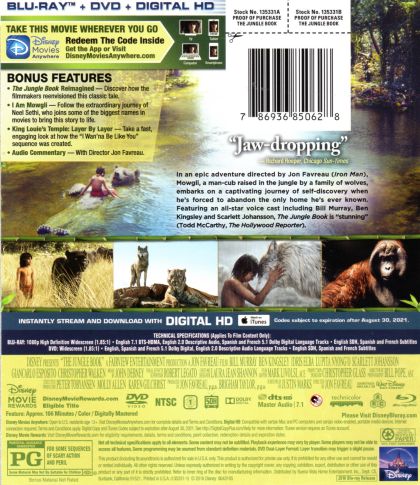 A Vasember-t is jegyző Jon Favreau ezúttal Rudyard Kipling klasszikusából forgatott élőszereplős filmet, amelyet a Disney azonos című animációs filmje inspirált. A kaland során Maugli, akit farkasok neveltek, a félelmetes tigrissel Sir Kánnal találja magát szembe. Mivel a rettentő ragadozón korábban már komoly sebeket ejtett az Ember, ellenségként tekint a fiúra. Maugli ezért elhagyja az egyetlen otthont, amit eddig ismert és egy lenyűgöző utazásra indul, amely során önmagát is jobban megismerheti. Szigorú mentora, Bagira a párduc és a szabad szellemű medve, Balu társaságában Maugli a dzsungel számos lakójával találkozik, akik nem biztos, hogy a legjobb szándékkal közelítenek a fiúhoz.