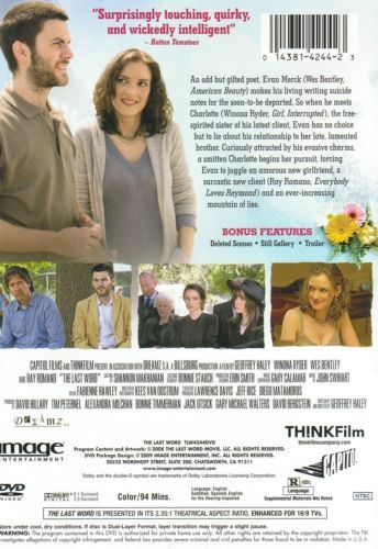 An odd-but-gifted poet, Evan Merck (Wes Bentley, 'American Beauty') makes his living writing suicide notes for the soon-to-be departed. So when he meets Charlotte (Winona Ryder, 'Girl, Interrupted'), the free-spirited sister of his latest client, Evan has no choice but to lie about his relationship to her late, lamented brother.
