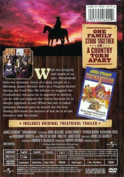 Charlie Anderson, a farmer in Shenandoah, Virginia, finds himself and his family in the middle of the Civil War he wants nothing to do with. When his youngest boy is taken prisoner by the North, the Civil War is forced upon him.