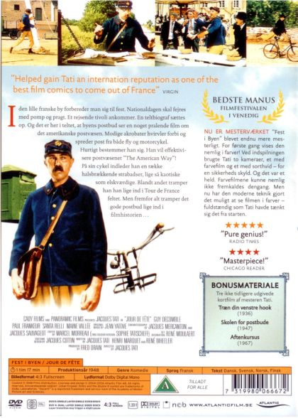 A kisváros lakossága a hagyományos, évente megrendezett búcsúra készülődik. Megérkeznek a hintáslegények is, akik a tér közepére fel akarják szerelni a zászlórudat. A pózna csaknem a postás (Jacques Tati) fejére esik, aki ettől kezdve kicsit furcsán kezd viselkedni. Elhatározza, hogy felveszi a versenyt az amerikai postásokkal, akiknek a gyorsaságáról korábban látott egy filmet. Francois, aki ettől kezdve "amerikai módra kézbesít", bravúros biciklimutatványokkal bosszantja a helyieket és kápráztatja el a film nézőit...