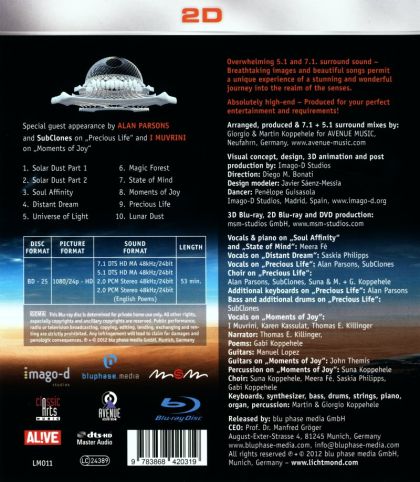 LICHTMOND's second multimedia album "Universe of Light", had the collaboration of the music legend Alan Parsons. The resulting award-winning animation music project will have its world premiere at the Planetarium Hamburg, in September 2012. This unique 360° show will be distributed subsequently worldwide.