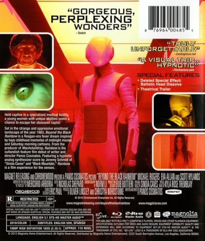 A Beyond the black rainbow legnagyobb erőssége kétségtelenül a megbabonázó látványvilága, mely rengeteg klasszikus, filmet idéz meg. A világítás, a kameraállások és a díszlet mind meghatározóak és valódi atmoszférát teremtenek.