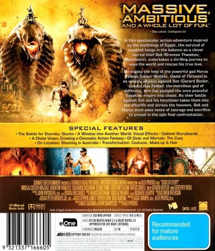 Istenek, szörnyek, varázslat és téboly uralja a Nílus völgyének palotáit az ókori mitológia ihlette Egyiptom istenei című szuperprodukcióban. Széth (Gerard Butler), a sivatag könyörtelen istene, aki magához ragadja Egyiptom trónját, az egykor békés és virágzó birodalmat káoszba és pusztulásba taszítja. Lázadó halandók egy csapata Bekkel (Brenton Thwaites), a szerelmes ifjú tolvajjal az élen szövetkezik Hórusszal (Nikolaj Coster-Waldau), hogy megállítsák a kegyetlen nagyurat. A Széth és csatlósai ellen vívott háborúban megjárják a mennyet és a poklot is, ahol isteneknek és halandóknak egyaránt tanúbizonyságot kell tenniük bátorságukról és állhatatosságukról, hogy felül tudjanak kerekedni a végső ütközetben.