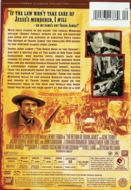 Frank James (Henry Fonda) learns that Bob (John Carradine) and Charlie Ford (Charles Tannen) have killed his brother, Jesse James. He had hoped that they would be arrested and charged, but the two are pardoned, and that means that Frank is on the case, with revenge on his mind. He sets out to find his brother's killers, with Clem (Jackie Cooper), the son of a member of the James gang. As troubles arise, they begin to tell people that Frank James is also dead, and that they saw it happen. Soon, reporter Eleanor Stone (Gene Tierney) hears of the story, and decides to interview Frank, who is going by the name Ben Woodson to cover his story. They both feel attractions to one another, but Eleanor soon learns Frank's true identity.