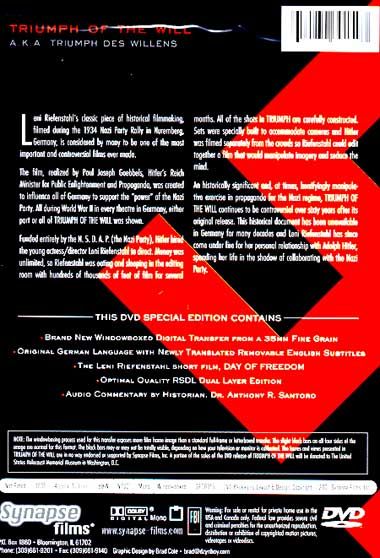 Az akarat diadala című alkotás lényegében egy hírhedt propagandafilm az 1934-es náci párt nürnbergi gyűléséről, melyen olyan pártfunkcionáriusok is részt vettek, mint Hitler, Himmler, Goebbels, Hess és Goering.