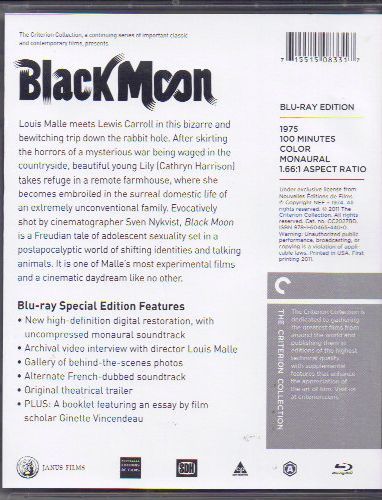 A film gyönyörű, képi vízió, amelyet nem a ráció, hanem inkább az érzelmek, a lelki ráhangolódás útján lehet megközelíteni. Egy fiatal lány a polgárháború poklában egy erdőszéli házba menekül, ahol furcsa lakókat talál. Egy öreg hölgyet, aki beszélget a patkánnyal, meg egy megszólalásig egymásra hasonlító testvérpárt. Mindenféle állatok veszik őket körül, mint a filozófus unicornis, meg a zongorázó macska... A rejtelmes-sejtelmes történetben alig hangzik el emberi szó, a bravúrosan fotografált képek ereje és hangulata sodorja a különös cselekményt, ami a nemek háborúja utáni kietlen világban játszódik. Louis Malle a francia új hullám egyik legizgalmasabb alakja, aki filmjeivel külön művészi utakon járt, s mindvégig megőrizte elegáns kívülállását. Egy-egy filmjének bemutatása eseményszámba ment, amit hol rajongás, hol botrány tett emlékezetessé. A franciák történelmi önérzetét sértő műve (Lacombe Lucien) után bő évtizedre Amerikában telepedett le. A Fekete Holdat inkább eredeti angol címén, Black Moonként ismerte meg a szűkebb filmszakma.