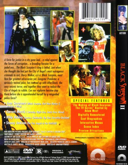 Darcy is back on the force, but still fights on as the Black Scorpion because "it's in her nature." This time, she fights Gangster Prankster; and a new villian emerges when the Mayor tries to protect his federal earthquake relief money: Aftershock. When the two villians team up and kidnap Argyle's girlfriend, Black Scorpion is faced with the theft of the Scorpionmobile and the imminent destruction of Angel City.