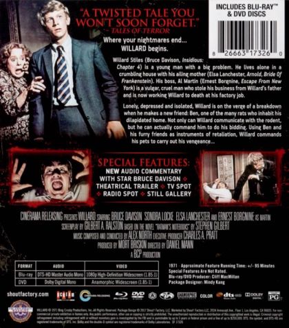 A social misfit, Willard is made fun of by his co-workers, and squeezed out of the company started by his deceased father by his boss. His only friends are a couple of rats he raised at home, Ben and Socrates. However, when one of them is killed at work, he goes on a rampage using his rats to attack those who have been tormenting him.
