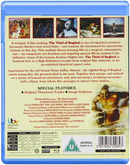 When Prince Ahmad (John Justin) is blinded and cast out of Bagdad by the nefarious Jaffar (Conrad Veidt), he joins forces with the scrappy thief Abu (the incomparable Sabu, in his definitive role) to win back his royal place, as well as the heart of a beautiful princess (June Duprez).