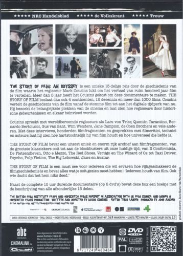 The Story of Film: An Odyssey, written and directed by award-winning film-maker Mark Cousins, is the story of international cinema told through the history of cinematic innovation. Five years in the making, The Story of Film: An Odyssey covers six continents and 12 decades, showing how film-makers are influenced both by the historical events of their times, and by each other. It provides a worldwide guided tour of the greatest movies ever made; an epic tale that starts in nickelodeons and ends as a multi-billion-dollar globalised digital industry. Described as a love letter to the movies, Cousins visits the key sites in the history of cinema; from Hollywood to Mumbai; from Hitchcock s London to the village where Pather Panchali was shot, and features interviews with legendary filmmakers and actors including Stanley Donen, Kyoko Kagawa, Gus van Sant, Lars Von Trier, Claire Denis, Bernardo Bertolucci, Robert Towne, Jane Campion and Claudia Cardinale.