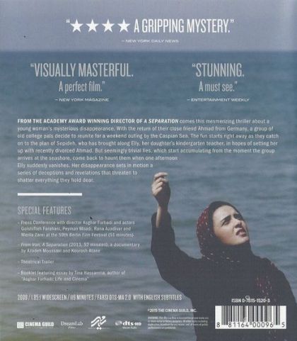 Az Elly története banális mondatokból, átlagos pillanatokból bontja ki a tragédiát és egy mozdulattal szorítja rémült kaviccsá a szívünket. Asghar Farhadi író-rendező mesteri módon vezet be minket a mai iráni fiatalok-középkorúak, városi kisgyerekesek ezer szállal átszőtt, tradícióktól, kultúrától kötött világába. Modern mindennapokat mutat, de úgy, hogy kiragadja őket a modern mindennapokból és egy elhagyott, időtlen tengerpartra dobja őket, piknikezni. Házaspárok, gyerekek bolondoznak a kibérelt, romos villában és egy régi barátjuk, Ahmad (Shahab Hosseini), aki külföldről tér haza, hogy egy keserű válás után új asszonyt találjon magának. Na, és Elly. Elly (Taraneh Alidoosti) az egyik gyerek tanítónője, de igazából senki nem tud róla semmit, csak hogy mosolygós, halk, kedves és kicsit szégyenlős. Sepideh (Golshifteh Farahani), a társaság lelke hívja meg, mert azt reméli, Ahmad és a húszéves Elly egymásra találnak.