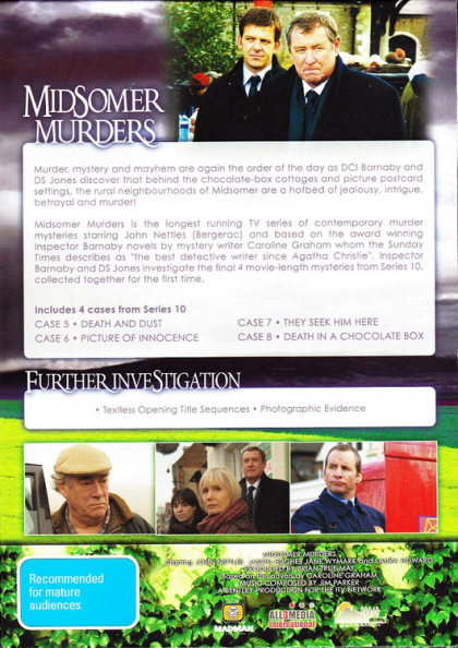 Anglia egyik zöldellő szegletében húzódik meg Midsomer városka. A település és a környék lakói nyugalomban élik angolosan kimért mindennapjaikat. Mindez azonban csupán látszat. A háttérben nem egyszer különös, szinte megmagyarázhatatlan események történnek. A vidék tisztes lakóinak hangulatát gyilkosság, vagy éppen gyilkosságsorozat híre borzolja. Kinek volt az útjában a helyi postás? Kinek a tetemét rejti a környék egyik régi kútja? Mi az összefüggés a Midsomert rettegésben tartó gyilkosságsorozat eseményei közt? Valóban földönkívüliek a tettesek a gabonaköröknél történt halálesetnél? Tom Barnaby felügyelő és társa, Gavin Troy őrmester igyekszik felgöngyölíteni a sokszor igencsak szövevényes szálakat és kézre keríteni a történetek végéig rejtőzködő gyilkost.