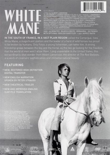 In the south of France, in a vast plain region called the Camargue, lives White Mane, a magnificent stallion and the leader of a herd of wild horses too proud to let themselves be broken by humans. Only Folco, a young fisherman, manages to tame him. A strong friendship grows between the boy and the horse, as the two go looking for the freedom that the world of men won’t allow them.