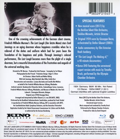 | Zenész | Giuseppe Becce, Timothy Brock, Florian C. Reithner, Karl-Ernst Sasse, Werner Schmidt-Boelcke | |