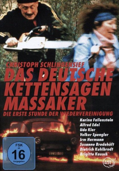 In "German Chainsaw Massacre" people meet up with a household of butchers. They detect low cost meat in the East Germans moving over the old boundary into the West and start turning them into sausage. Clara flees the slaying of her sleazy spouse and the rotting East, and lands in the arms of butchers. She is held alive simply because the daughter of the family falls in love with her. This German movie is a satirical massacre splatter flick that provides lots of inexpensive gore. It's full of political overtones and has a lot to Tobe Hooper's terror classic "The Hollywood Chainsaw Hookers". If you're a lover of German gore and absurdness, check it out!. 16 million East Germans on their way to the golden West. 4% never got there: were they turned into Wuerste (sausages)? If you knew Christoph Schlingensief's other movies like "United Trash" you will know what this is all about - some call it art, some trash. Shot in 14 days after October the 3rd 1990. With Udo Kier in a small role.