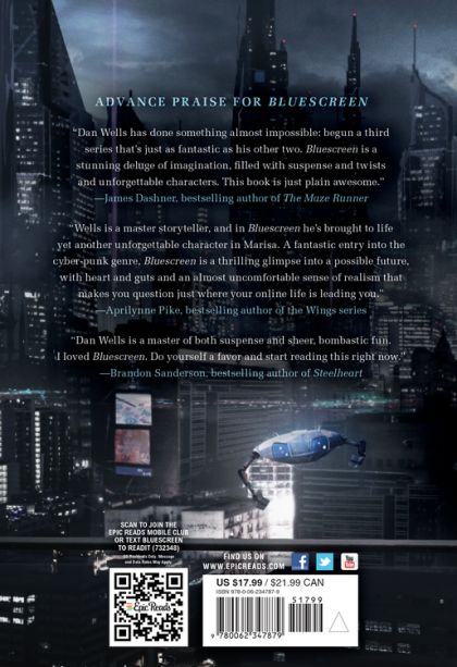 “Bluescreen is a stunning deluge of imagination, filled with suspense and twists and unforgettable characters. This book is just plain awesome.”—James Dashner, bestselling author of The Maze RunnerFrom Dan Wells, author of the New York Times bestselling Partials Sequence, comes the first book in a new sci-fi-noir series. Los Angeles in 2050 is a city of open doors, as long as you have the right connections. That connection is a djinni—a smart device implanted right in a person’s head. In a world where virtually everyone is online twenty-four hours a day, this connection is like oxygen—and a world like that presents plenty of opportunities for someone who knows how to manipulate it.Marisa Carneseca is one of those people. She might spend her days in Mirador, but she lives on the net—going to school, playing games, hanging out, or doing things of more questionable legality with her friends Sahara and Anja. And it’s Anja who first gets her hands on Bluescreen—a virtual drug that plugs right into a person’s djinni and delivers a massive, nonchemical, completely safe high. But in this city, when something sounds too good to be true, it usually is, and Mari and her friends soon find themselves in the middle of a conspiracy that is much bigger than they ever suspected.