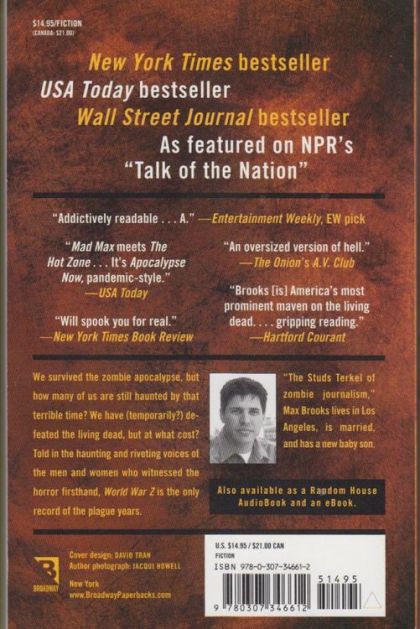 #1 NEW YORK TIMES BESTSELLER • “Prepare to be entranced by this addictively readable oral history of the great war between humans and zombies.”—Entertainment Weekly We survived the zombie apocalypse, but how many of us are still haunted by that terrible time? We have (temporarily?) defeated the living dead, but at what cost? Told in the haunting and riveting voices of the men and women who witnessed the horror firsthand, World War Z is the only record of the pandemic. The Zombie War came unthinkably close to eradicating humanity. Max Brooks, driven by the urgency of preserving the acid-etched first-hand experiences of the survivors, traveled across the United States of America and throughout the world, from decimated cities that once teemed with upwards of thirty million souls to the most remote and inhospitable areas of the planet. He recorded the testimony of men, women, and sometimes children who came face-to-face with the living, or at least the undead, hell of that dreadful time. World War Z is the result. Never before have we had access to a document that so powerfully conveys the depth of fear and horror, and also the ineradicable spirit of resistance, that gripped human society through the plague years.THE INSPIRATION FOR THE MAJOR MOTION PICTURE“Will spook you for real.”—The New York Times Book Review “Possesses more creativity and zip than entire crates of other new fiction titles. Think Mad Max meets The Hot Zone. . . . It’s Apocalypse Now, pandemic-style. Creepy but fascinating.”—USA Today “Will grab you as tightly as a dead man’s fist. A.”—Entertainment Weekly, EW Pick “Probably the most topical and literate scare since Orson Welles’s War of the Worlds radio broadcast . . . This is action-packed social-political satire with a global view.”—Dallas Morning News