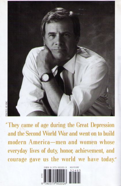 In this book, Tom Brokaw goes out into America, to tell through the stories of individual men and women the story of a generation, America's citizen heroes and heroines who came of age during the Great Depression and the Second World War and went on to build modern America. This generation was united not only by a common purpose, but also by common values - duty, honor, economy, courage, service, love of family and country, and, above all, responsibility for oneself. In this book, you will meet people whose everyday lives reveal how a generation persevered through war, and were trained by it, and then went on to create interesting and useful lives and the America we have today.