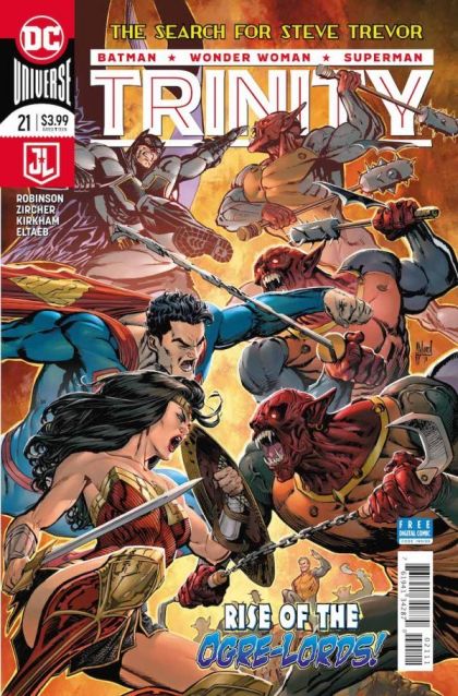 "MAN DOWN" part two! Deimos and his armies have besieged the Trinity-so why is Steve Trevor helping the enemy?! Wonder Woman, Batman and Superman fight their way through one monstrous magical menace after another as Dark Strike's stolen Skartaran weaponry is unleashed!