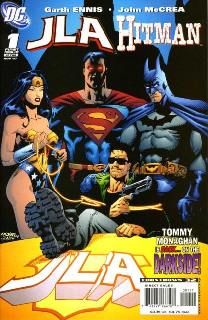 Clark Kent is interviewed by a young journalist curious to find out the connection between Superman and a contract killer named Tommy Monaghan, known as Hitman. Kent tells the reporter of what happened some years before when the JLA were based at the Watchtower on the moon. Green Lantern leaves the Watchtower to investigate a damaged space shuttle that NASA has lost contact with. Scanning the craft with his ring and sending the results back to the tower alerts Batman to a potential threat.Monaghan, meanwhile, is in Gotham following a tip-off that four killers are after him. As the killers argue about who is in charge, Monaghan throws a bomb into the room, killing all of them.At the Watchtower, Batman reveals what was identified by Lantern's ring once he returns. The Bloodline parasites appear to be on the space probe. Realising they need a survivor of the parasites' earlier attack, Batman heads down to Gotham where he finds Monaghan and brings him back to the moon. Green Lantern is embarrassed when Monaghan recognises him and tells the others of how they had teamed up, causing Batman to lecture Lantern on the morality of associating with a hired killer. His tirade is cut short when Superman walks in and recognises Monaghan, greeting him as a friend. Batman tells Superman of Monaghan's profession which he shamefacedly admits to. Monaghan's blood is tested and compared to the readings from the probe; the creatures on the probe appear more advanced and a greater threat. The League disagree on how to deal with the threat of the aliens but their hand is forced when the probe accelerates and heads for the moon; it crashlands and Superman flies out to find any survivors. At the Watchtower, the four remaining heroes and Monaghan suddenly feel their individual powers waning and it is Monaghan who reminds them that if it has happened to all of them, it may have happened to Superman who is outside on the moon's surface.