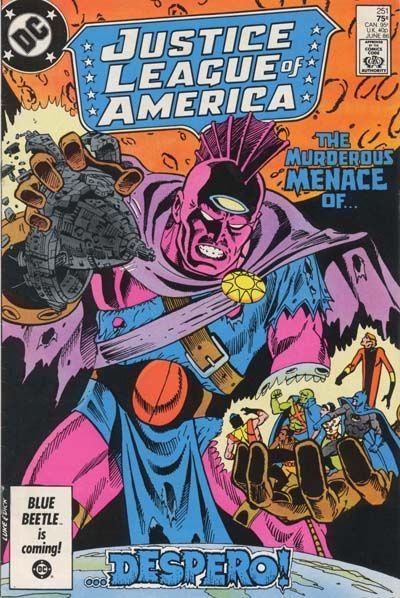 Despero finds the JLA satellite abandoned and in ruins and drops to Earth.