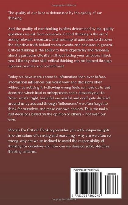 The quality of our lives is directly related to the quality of our thinking. Our thinking is shaped by the questions we ask ourselves. Critical thinking involves asking relevant, necessary, and meaningful questions to uncover the objective truth behind words, events, and opinions. In today's information age, we are bombarded with data that influences our worldview and decisions, often without our awareness. Following misguided opinions can lead to poor decisions, resulting in unhappiness and dissatisfaction. It's time to reclaim your ability to think independently and make your own choices.