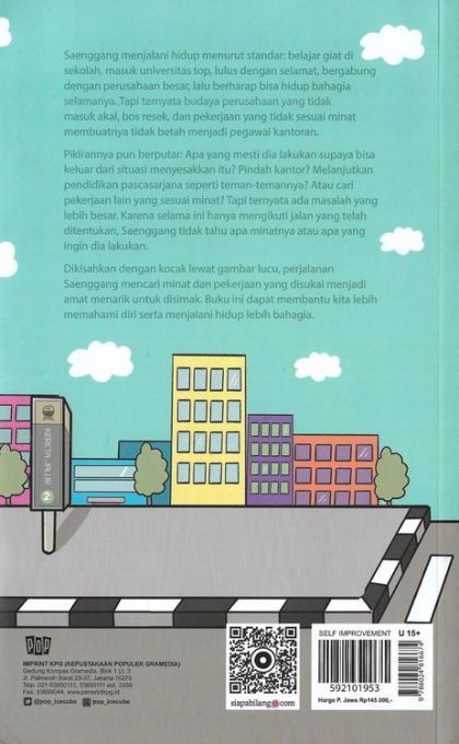 Buku Kerja Selain Kantoran karya Saenggang akan menceritakan mengenai perjalanan Saenggang untuk mencari minat dan pekerjaan yang disukainya. Dilengkapi dengan ilustrasi penuh warna yang lucu. Buku ini dapat membantu kita memahami diri sendiri serta menjalani hidup lebih bahagia lagi. Semua kisahnya relate dengan kehidupan pekerja kantor pada umumnya. Buku Kerja Selain Kantoran akan memberikan tips-tips untuk menggali potensi lain dalam diri kita, agar kehidupan yang dijalani sesuai dengan minat dan keinginan kita. Buku ini cocok untuk para pekerja kantor yang sedang merasa letih, penat, dan frustasi menghadapi rutinitas pekerjaan sehari-hari. Yuk, jadikan buku ini sebagai media pengembangan diri Anda!