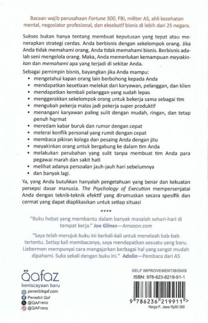 Ya, yang Anda butuhkan hanyalah pengetahuan yang benar dan kekuatan persepsi dasar manusia. The Psychology of Execution mempersenjatai Anda dengan teknik-teknik efektif yang dirumuskan secara spesifik dan cermat yang dapat diaplikasikan untuk setiap situasi