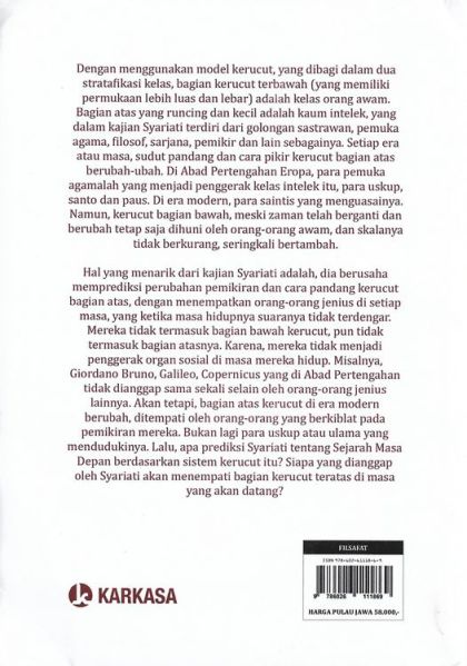Hal yang menarik dari kajian Syariati adalah, dia berusaha memprediksi perubahan pemikiran dan cara pandang kerucut bagian atas, dengan menempatkan orang-orang jenius di setiap masa, yang ketika masa hidupnya suaranya tidak terdengar. Mereka tidak termasuk bagian bawah kerucut, pun tidak termasuk bagian atasnya. Karena, mereka tidak menjadi penggerak organ sosial di masa mereka hidup. Misalnya, Giordano Bruno, Galileo, Copernicus yang di Abad Pertengahan tidak dianggap sama sekali selain oleh orang-orang jenius lainnya. Akan tetapi, bagian atas kerucut di era modern berubah, ditempati oleh orang-orang yang berkiblat pada pemikiran mereka. Bukan lagi para uskup atau ulama yang mendudukinya. Lalu, apa prediksi Syariati tentang Sejarah Masa Depan berdasarkan sistem kerucut itu? Siapa yang dianggap oleh Syariati akan menempati bagian kerucut teratas di masa yang akan datang?