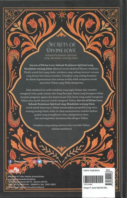 Secrets of Divine Love: Sebuah Perjalanan Spiritual yang Mendalam tentang Islam dikemas secara eksklusif khusus untukmu. Ditulis untuk hati yang rindu, untukmu yang sedang mencari sesuatu yang belum bisa kamu temukan. Untukmu yang sedang berputar ke dalam keputusasaan dan merasa terlalu tidak sempurna untuk mencintai Tuhan yang Maha Sempurna. Edisi eksklusif ini terbit untukmu yang ingin belajar dan semakin mengenal cinta; pada sesama dan Sang Pencipta. Kamu yang beragama Islam ataupun penganut agama dan kepercayaan lain, kamu yang sudah mengenal Tuhan atau masih mencari untuk mengenal Tuhan, Secrets of Divine Love: Sebuah Perjalanan Spiritual yang Mendalam tentang Islam cocok untuk kamu baca. Selain menawarkan perspektif yang tulus tentang teologi Islam, buku ini akan menuntunmu melalui latihan praktis yang mengilhami cinta, memperkuat iman, dan meningkatkan keintiman kita dengan Tuhan. Untukmu yang sedang mencari dan merindu Tuhan, selamat membaca!