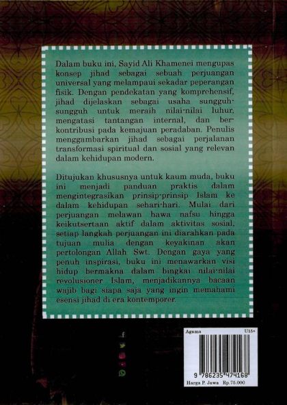 Dalam buku ini, Sayyid Ali Khamenei mengupas konsep jihad sebagai sebuah perjuangan universal yang melampaui sekadar peperangan fisik. Dengan pendekatan yang komprehensif, jihad dijelaskan sebagai usaha sungguh- sungguh untuk meraih nilai-nilai luhur, mengatasi tantangan internal, dan berkontribusi pada kemajuan peradaban. Penulis menggambarkan jihad sebagai perjalanan transformasi spiritual dan sosial yang relevan dalam kehidupan modern.