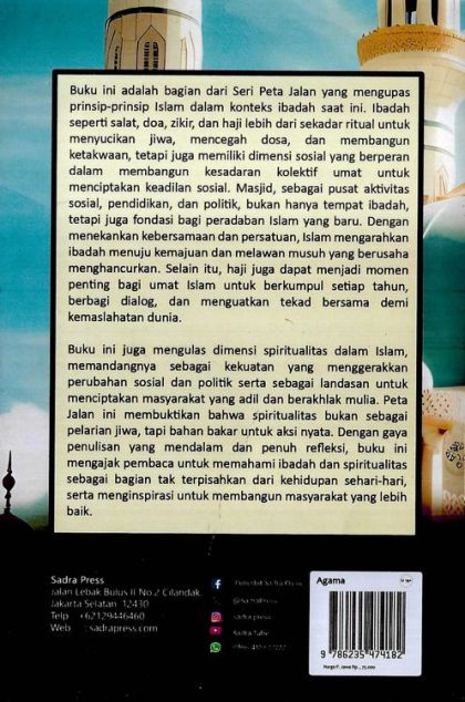 Buku ini adalah bagian dari Seri peta Jalan yang mengupas prinsip-prinsip Islam dalam konteks ibadah saat ini. lbadah seperti salat, doa, zikir, dan haji lebih dari sekadar ritual untuk menyucikan jiwa, mencegah dosa, dan membangun ketakwaan, tetapi juga memiliki dimensi sosial yang berperan dalam membangun kesadaran kolektif umat untuk menciptakan keadilan sosial. Masjid, sebagai pusat aktivitas sosial, pendidikan, dan politik, bukan hanya tempat ibadah, tetapi juga fondasi bagi peradaban Islam yang baru. Dengan menekankan kebersamaan dan persatuan, Islam mengarahkan ibadah menuju kemajuan dan melawan musuh yang berusaha menghancurkan. Selain itu, haji juga dapat menjadi momen penting bagi umat Islam untuk berkumpul setiap tahun, berbagi dialog, dan menguatkan tekad bersama demi kemaslahatan dunia.