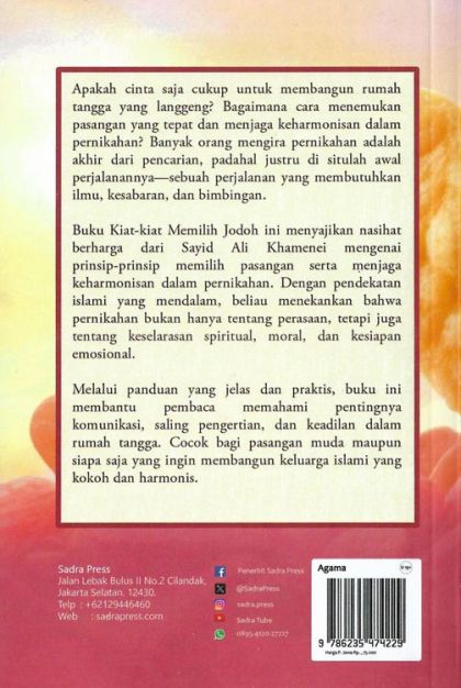 Buku Kiat-kiat Memilih Jodoh ini menyajikan nasihat berharga dari Sayid Ali K hamenei mengenai prinsip-prinsip memilih pasangan serta menjaga keharmonisan dalam pernikahan. Dengan pendekatan islami yang mendalam, beliau menekankan bahwa pernikahan bukan hanya tentang perasaan, tetapi juga tentang keselarasan spiritual, moral, dan kesiapan emosional.