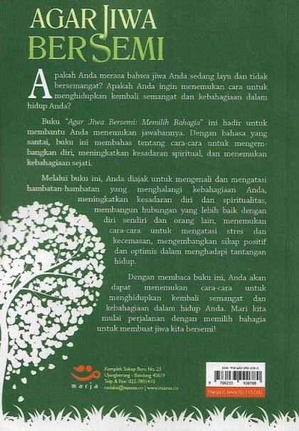 Dengan membaca buku ini, Anda akan dapat menemukan cara-cara untuk menghidupkan kembali semangat dan kebahagiaan dalam hidup Anda. Mari kita mulai perjalanan dengan memilih bahagia untuk membuat jiwa kita bersemi!