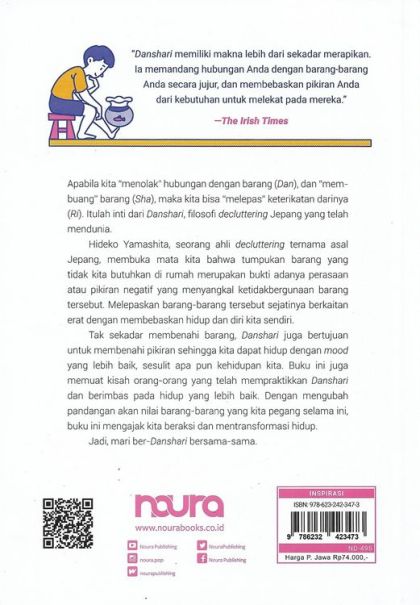 Tak sekadar membenahi barang, buku ini juga bertujuan untuk membenahi pikiran sehingga kita dapat hidup dengan mood yang lebih baik, sesulit apapun kehidupan kita. Buku ini juga memuat kisah orang-orang yang telah mempraktikkan Danshari dan berimbas pada hidup yang lebih baik. Dengan mengubah pandangan akan nilai barang-barang yang kita pegang selama ini, buku ini mengajak Anda beraksi dan mentransformasi hidup.
