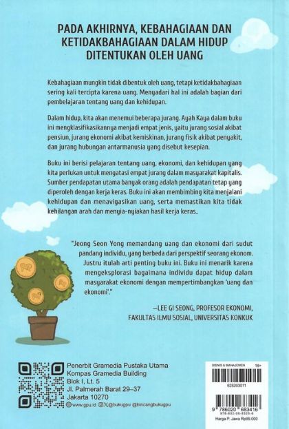Buku ini menarik karena mengeksplorasi bagaimana individu dapat hidup dalam masyarakat ekonomi dengan mempertimbangkan ‘uang dan ekonomi’.” —LEE GI-SEONG, PROFESOR EKONOMI, FAKULTAS ILMU SOSIAL, UNIVERSITAS KONKUK