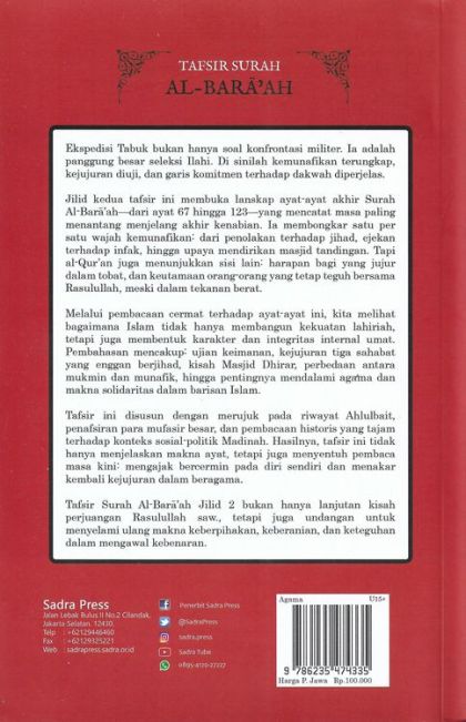 Tafsir Surah Al-Bara'ah Jilid 2 bukan hanya lanjutan kisah perjuangan Rasulullah saw., tetapi juga uandangan untuk menyelami ulang makna keberpihakan, keberanian, dan keteguhan dalam mengawal kebenaran.