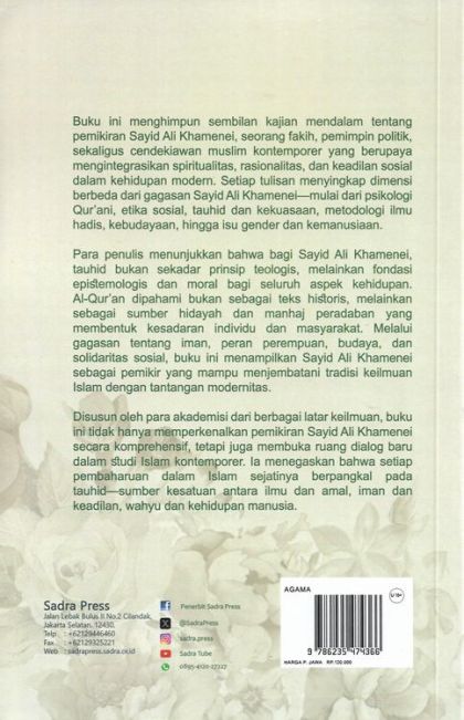 Buku ini menghimpun sembilan kajian mendalam tentang pemikiran Sayid Ali Khamenei, seorang fakih, pemimpin politik, sekaligus cendekiawan muslim kontemporer yang berupaya mengintegrasikan spiritualitas, rasionalitas, dan keadilan sosial dalam kehidupan modern. Setiap tulisan menyingkap dimensi berbeda dari gagasan Sayid Ali Khamenei--mulai dari psikologi Qur'ani, etika sosial, tauhid dan kekuasaan, metodologi ilmu hadis, kebudayaan, hingga isu gender dan kemanusiaan.