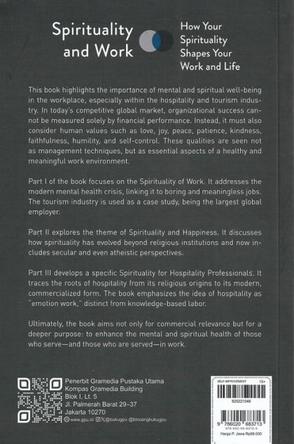 This book highlights the importance of mental and spiritual well-being in the workplace, especially within the hospitality and tourism indus-try. In today’s competitive global market, organizational success can-not be measured solely by financial performance. Instead, it must also consider human values such as love, joy, peace, patience, kindness, faithfulness, humility, and self-control. These qualities are seen not as management techniques, but as essential aspects of a healthy and meaningful work environment.