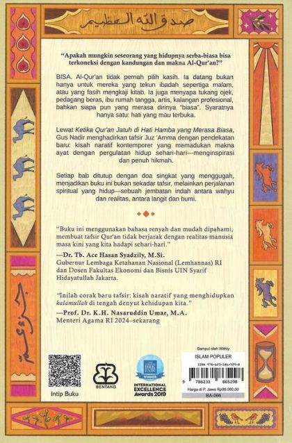 "Buku ini menggunakan bahasa renyah dan mudah dipahami, membuat tafsir Qur'an tidak berjarak dengan realitas manusia masa kini yang kita hadapi sehari-hari."