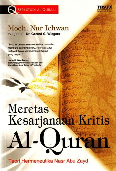 "Buku ini mengkaji pemikiran Nasr Abu Zayd, yng mengembangkan analisis isi (content analysis) ke analisis wacana (discourse analysis) dalam studi tafsir Al-Quran, cukup menarik minat arah pemikiran (para pemikir) Islam kontemporer."