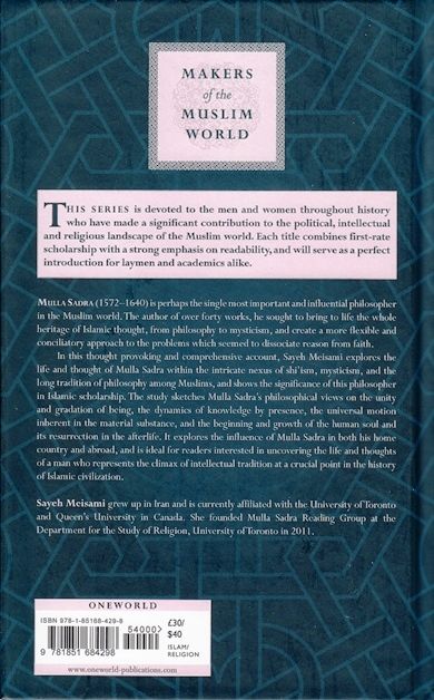 Mulla Sadra (572 - 1640) is perhaps the single most important and influential philosopher in the Muslim world in the last four hundred years. The author of over forty works, he sought to bring to life the whole heritage of Islamic thought, from philosophy to mysticism, and create a more flexible and conciliatory approach to the problems which seemed to dissociate reason from faith. In this wide-ranging profile, Sayeh Meisami reaches beyond historical narrative to assess the true impact of the man and his ideas. This thought provoking and comprehensive account is ideal for any philosopher wanting to uncover the life and thoughts of a man who represents the climax of intellectual tradition at a crucial point in the history of Islamic civilization.