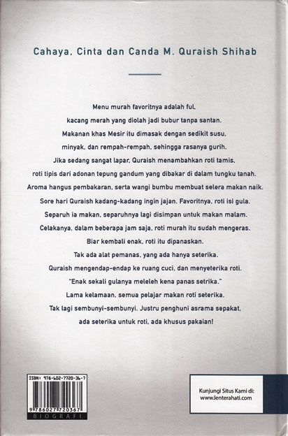 Dengan membaca buku Cahaya, Cinta dan Canda M. Quraish Shihab ini kita diajak untuk mengenal lebih dalam tentang tokoh M. Quraish Shihab, sosok yang selama ini lebih kita kenal sebagai ulama yang ahli Tafsir. Dia adalah cerminan dari “ulul-albab Indonesia” sejati. Mari kita teladani dan berguru kepadanya dengan membaca buku ini. (Bacharuddin Jusuf Habibie, 2015).