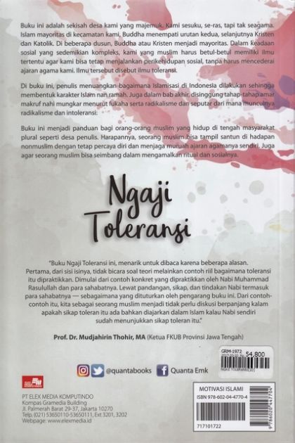 Buku ini adalah sebuah kisah desa kami yang majemuk. Kami sesuku, se-ras, tapi tak seagama. Islam mayoritas di kecamatan kami, Buddha menempati urutan kedua, selanjutnya Kristen dan Katolik. Di beberapa dusun, Buddha atau Kristen menjadi mayoritas. Dalam keadaan sosial yang sedemikian kompleks, kami yang muslim harus betul-betul memiliki ilmu tertentu agar kami bisa tetap menjalankan peri kehidupan sosial, tanpa harus mencederai ajaran agama kami. Ilmu tersebut disebut ilmu toleransi. Di buku ini, penulis juga menuangkan bagaimana Islamisasi di Indonesia dilakukan sehingga membentuk karakter Islam nan ramah. Juga dalam bab akhir, disinggung tahap-tahap amar makruf nahi mungkar menurut fukaha serta radikalisme dan seputar dari mana munculnya radikalisme dan intoleransi. Buku ini menjadi panduan bagi orang-orang muslim yang hidup di tengah masyarakat plural seperti desa penulis. Harapannya, seorang muslim bisa tampil santun di hadapan non muslim dengan tetap percaya diri dan menjaga muruah ajaran agamanya sendiri. Juga agar seorang muslim bisa seimbang dalam mengamalkan ritual dan sosialnya.