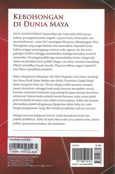 Data Kementerian Komunikasi Dan Infomatika 2018 Menyebut Kan, Penanganan Konten Negatif—seperti Hoaks, Berita Palsu, Dan Ujaran Kebencian—pada 2017 Meningkat 900 Persen Dibandingkan 2016. Peningkatan Yang Sangat Fantastis Dan Meresahkan. Sejumlah Hoaks Bahkan Sengaja Menyinggung Sentimen Suku, Agama, Ras, Dan Antargolongan (sara) Sehingga Menimbulkan Berbagai Keresahan Sosial Di Masyarakat. Persaingan Politik Juga Memanfaatkan Hoaks Sebagai Alat Untuk Menjatuhkan Lawan Politik Dengan Cara Kotor, Terutama Menjelang Pilkada (pemilihan Kepala Daerah), Pileg (pemilihan Anggota Legislatif), Atau Pilpres (pemilihan Presiden). Maka, Sebagaimana Dikatakan Oleh Heru Nugroho, Guru Besar Sosiologi Dan Ketua Prodi Kajian Budaya Dan Media Universitas Gadjah Mada, Dalam Pengantar Buku Ini, “hoaks Sebagai Politik Ancaman Menjadi Musuh Demokrasi, Sehingga Hoaks Pada Dasarnya Merupakan Musuh Bersama Masyarakat Indonesia Yang Sedang Berupaya Menuju Demokrasi Substansial. Karena Hoaks Menjadi Musuh Bersama, Maka Semua Pihak Perlu Bertindak Bersama-sama Dalam Memeranginya. Salah Satu Tawaran Alternatifnya Adalah Sebagaimana Dipaparkan Dalam Buku Ini, Yaitu Dengan Pengamanan Ruang Siber Melalui Pendekatan Re Exive Security.” Sebagai Semacam Pengantar Teoretis Untuk Memahami Hoaks Dan Praktik-praktiknya, Buku Ini Layak Dibaca Oleh Para Praktisi Sosial, Aktivis Politik, Aparat Pemerintahan, Dan Akademisi.