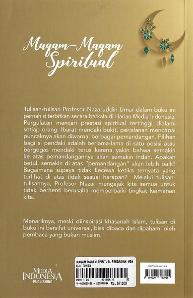 Tulisan-tulisan Profesor Nazaruddin Umar dalam buku ini pernah diterbitkan secara berkala di Harian Media Indonesia. Pergulatan mencari prestasi spiritual tertinggi dialami setiap orang. Ibarat mendaki bukit, perjalanan mencapai puncaknya akan diwarnai berbagai pemandangan. Pilihan bagi si pendaki adalah berlama-lama di satu posisi atau bergegas mendaki terus karena yakin bahwa semakin ke atas pemandangannya akan semakin indah. Apakah betul, semakin di atas "pemandangan" akan Iebih baik? Bagaimana supaya tidak kecewa ketika ternyata yang terlihat di atas tidak sesuai harapan? Melalui tulisan-tulisannya, Profesor Nazar mengajak kita semua untuk tidak berhenti berusaha memperbaiki tingkat keimanan kita.