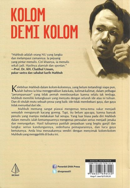 “Mahbub adalah orang NU yang langka dan melampaui zamannya. Ia pejuang yang pintar menulis. Ciri khasnya, ia menulis sekali jadi. Hasilnya alamiah dan spontan.” —Prof. Dr. KH. Chatibul Umam, pakar sastra dan sahabat karib Mahbub Kelebihan Mahbub dalam kolom-kolomnya, yang belum tertandingi siapa pun, ialah bahwa ia bisa menggerakkan kata-kata, kalimat-kalimat, dalam pelbagai “perumpamaan” yang tidak pernah membosankan karena selalu tak terduga. Mahbub memiliki ketangkasan yang menyatu dengan seluruh ide atau isi tulisan. Dan di situlah mutu sebuah prosa yang baik: ide tidak membebani gaya, dan gaya tidak menyebal dari ide.Mahbub memang sangat piawai mengemas tema-tema sukar menjadi semudah mengunyah kacang goreng. Tapi, itu belum apa-apa, karena banyak penulis yang mampu melakukan hal serupa. Yang luar biasa pada diri Mahbub dalam menulis ialah kemampuannya mengemas persoalan serius menjadi jenaka dan menyegarkan. Hasil tulisannya pastilah perpaduan yang begitu ganjil dan langka: serius kandungannya, sederhana pemaparannya, dan lucu gaya bertuturnya. Anda bisa merasakannya sendiri dengan menyimak kolom-kolom Mahbub yang menggelitik di buku ini.