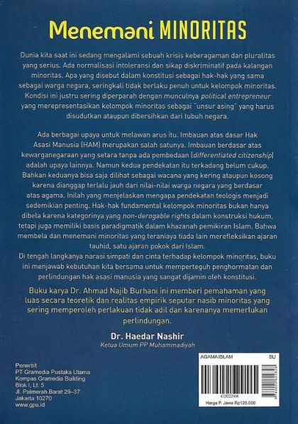 "Dunia kita saat ini sedang mengalami sebuah krisis keberagaman dan pluralitas yang serius. Ada normalisasi intoleransi dan sikap diskriminatif pada kalangan minoritas. Apa yang disebut dalam konstitusi sebagai hak-hak yang sama sebagai warga negara, seringkali tidak berlaku penuh untuk kelompok minoritas. Kondisi ini juustru sering diperparah dengan munculnya political entrepreneur yang merepresentasikan kelompok minoritas sebagai "unsur asing" yang harus disudutkan ataupun dibersihkan dari tubuh negara. Ada berbagai upaya untuk melawan arus itu. Imbauan atas dasar Hak Asasi Manusia (HAM) merupakan salah satunya. Imbauan berdasar atas kewarganegaraan yang setara tanpa ada pembedaaan (differentiated citizenship) adalah upaya lainnya. Namun kedua pendekatan itu terkadang belum cukup. Bahkan keduanya bisa saja dilihat sebagai wacana yang kering ataupun kosong karena dianggap terlalu jauh dari nilai-nilai warga negara yang berdasar atas agama. Inilah yang menjelaskan mengapa pendekatan teologis menjadi sedemikian penting. Hak-hak fundamental kelompok minoritas bukan hanya dibela karena kategorinya yang non-derogable rights dalam konstruksi hukum, tetapi juga memiliki basis paradigmatik dalam khazanah pemikiran Islam. Bahwa membela dan menemani minoritas yang teraniaya tiada lain merefleksikan ajaran tauhid, satu ajaran pokok dari Islam. Di tengah langkanya narasi simpati dan cinta terhadap kelompok minoritas, buku ini menjawab kebutuhan kita bersama untuk memperteguh penghormatan dan perlindungan hak asasi manusia yang sangat dijamin oleh konstitusi"--